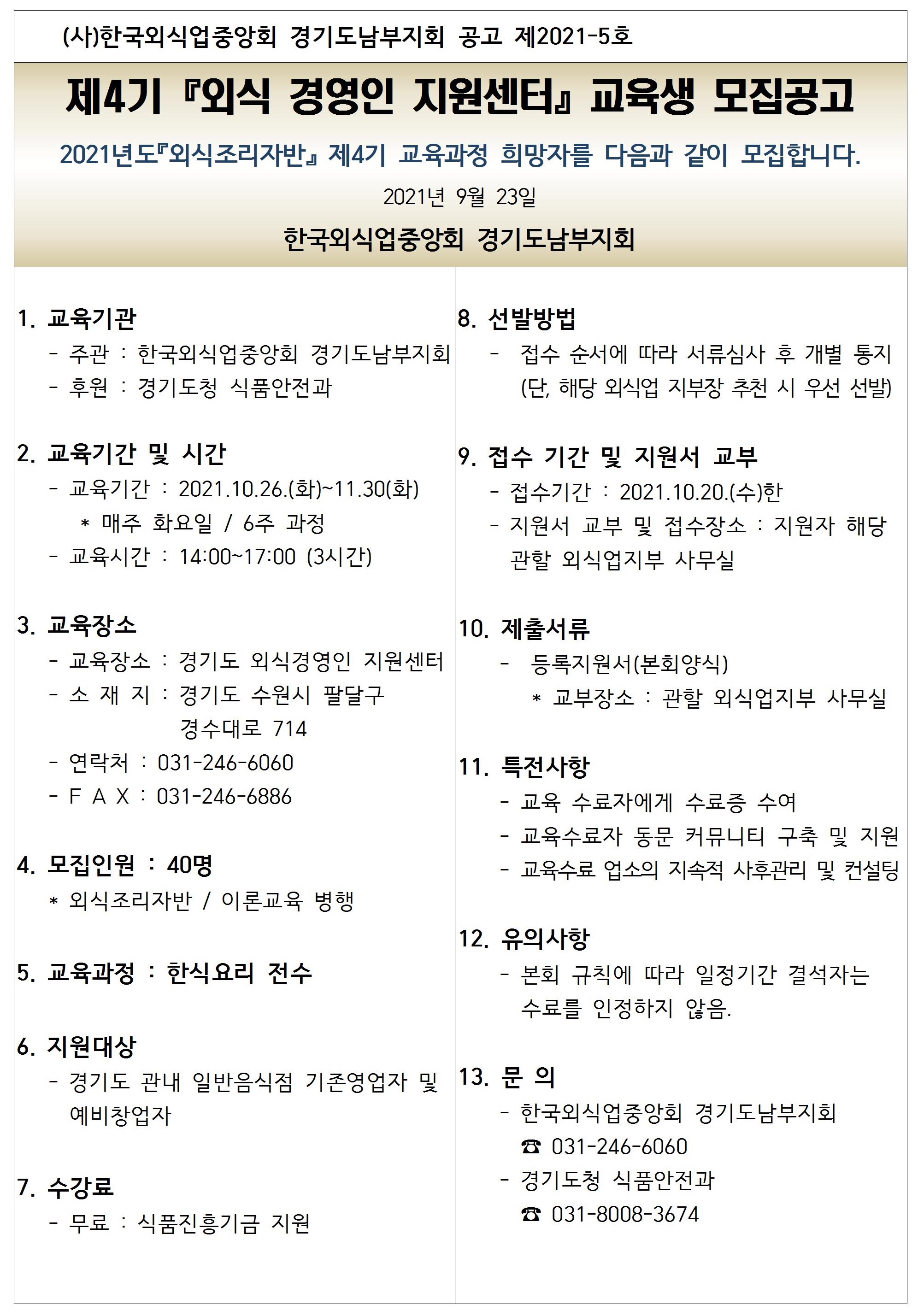 ¿ì¸®È¸¿Í °æ±âµµ°¡ ½Ç½ÃÇÏ´Â 2021 Á¦4±â¡¸¿Ü½Ä°æ¿µÀÎ Áö¿ø¼¾ÅÍ¡¹